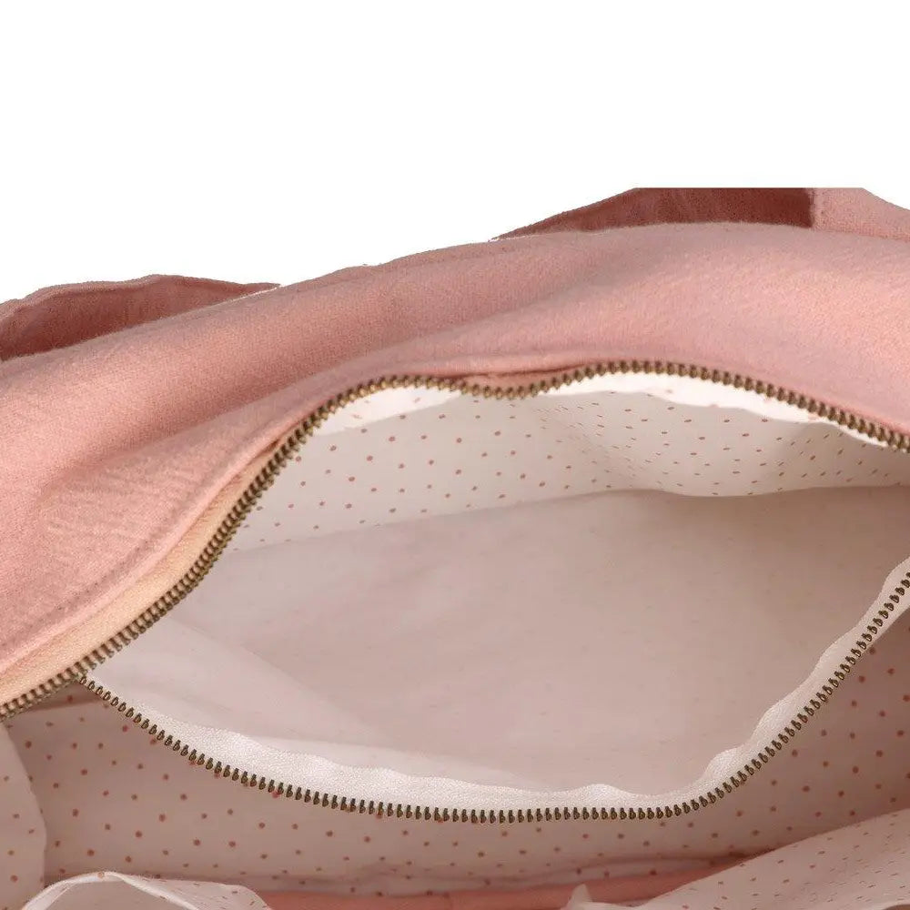 Foto's van het interieur als voorbeeld. De stipjes aan de binnenkant zijn dezelfde kleur als de buitenstof van de tas.